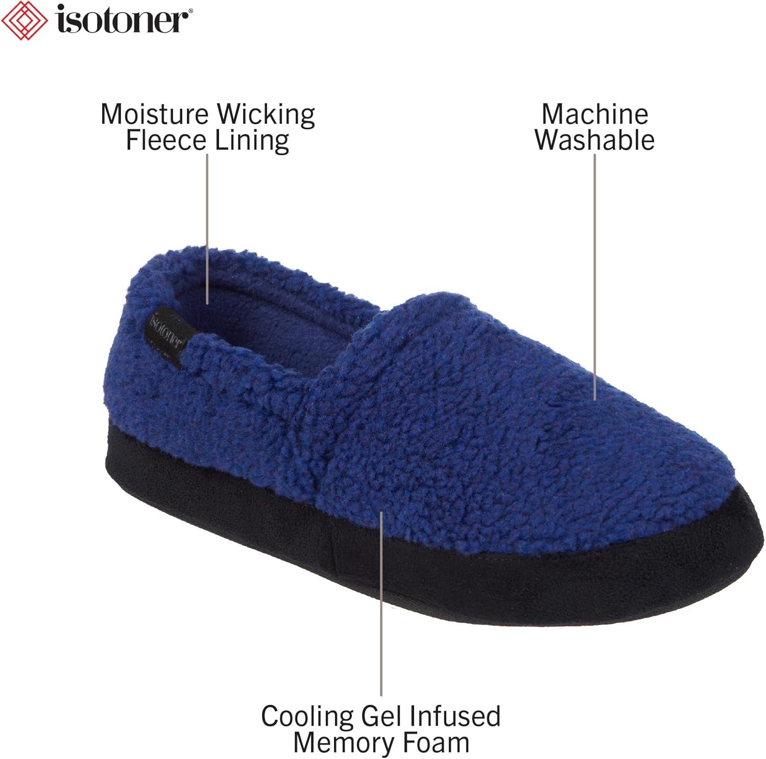 End your day on the right foot with the Mens Berber Aspen Closed Back Slipper. Built for comfort and designed to last, these slippers feature a cooling gel-infused memory foam footbed that adapts to your feet for custom cushioning with every step. The plush berber fabric and moisture-wicking fleece lining keep your feet feeling dry and comfortable, whether you are kicking back after a long day or taking on a weekend project at home, or running errands.