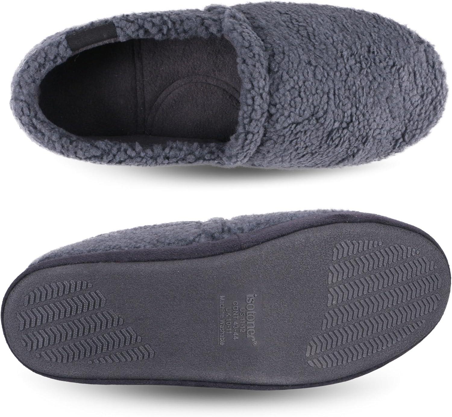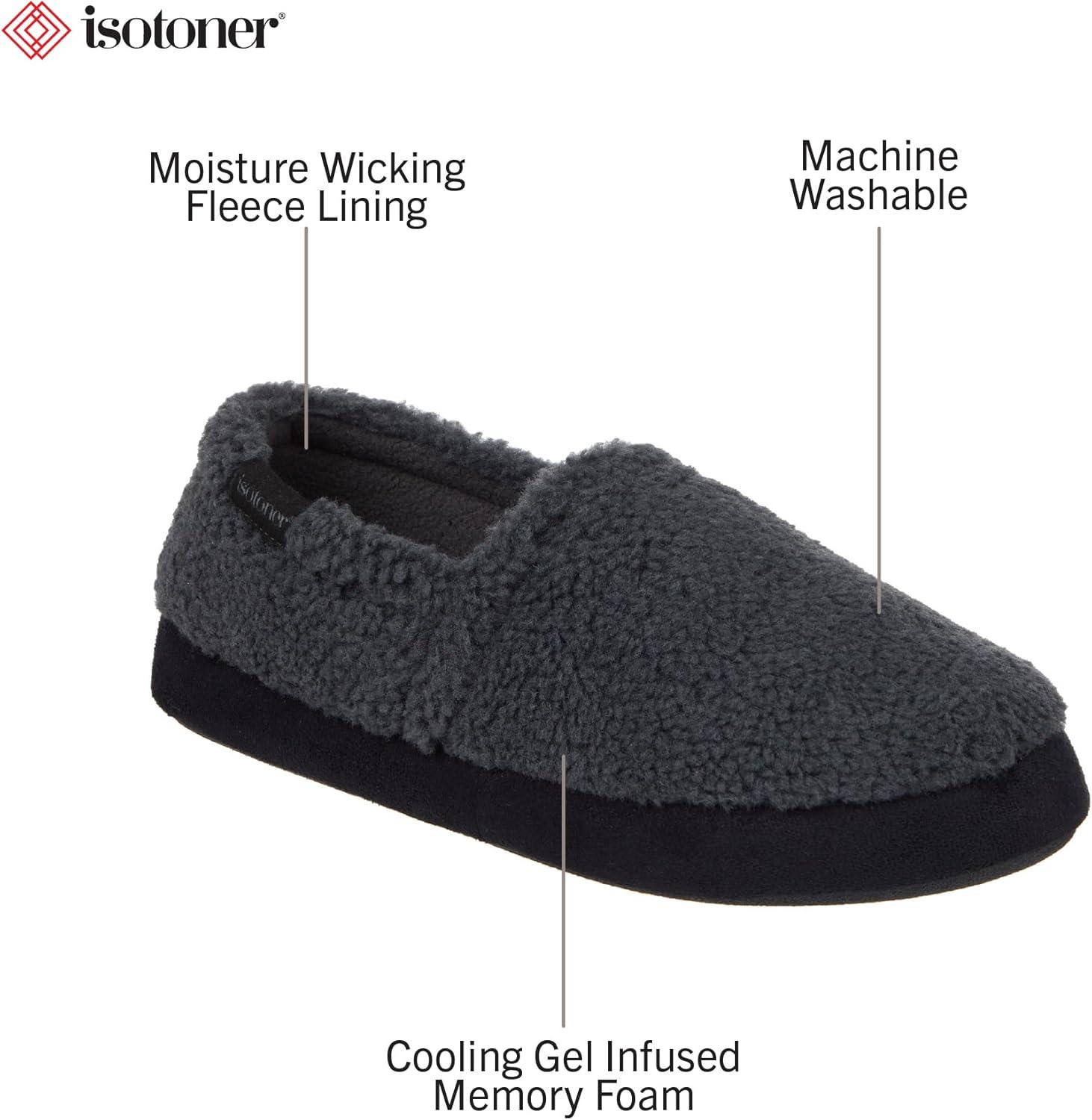isotoner mens Berber Aspen Closed Back Slippers With Memory Foam Comfort and Breathable Lining(Mineral)