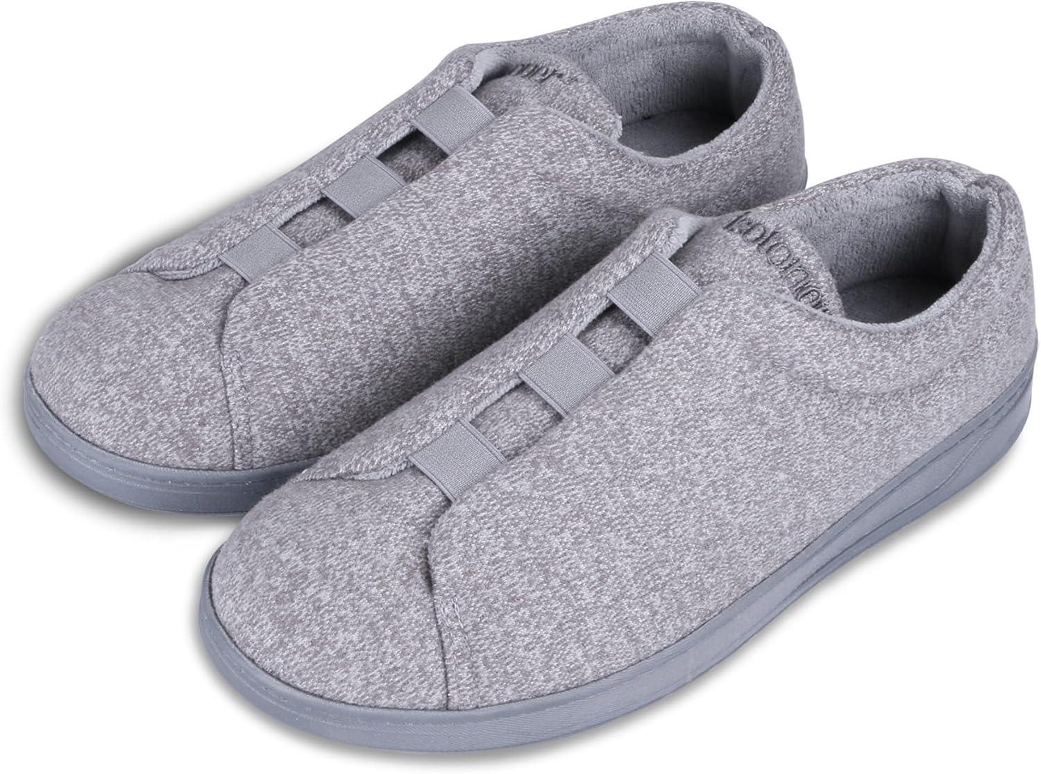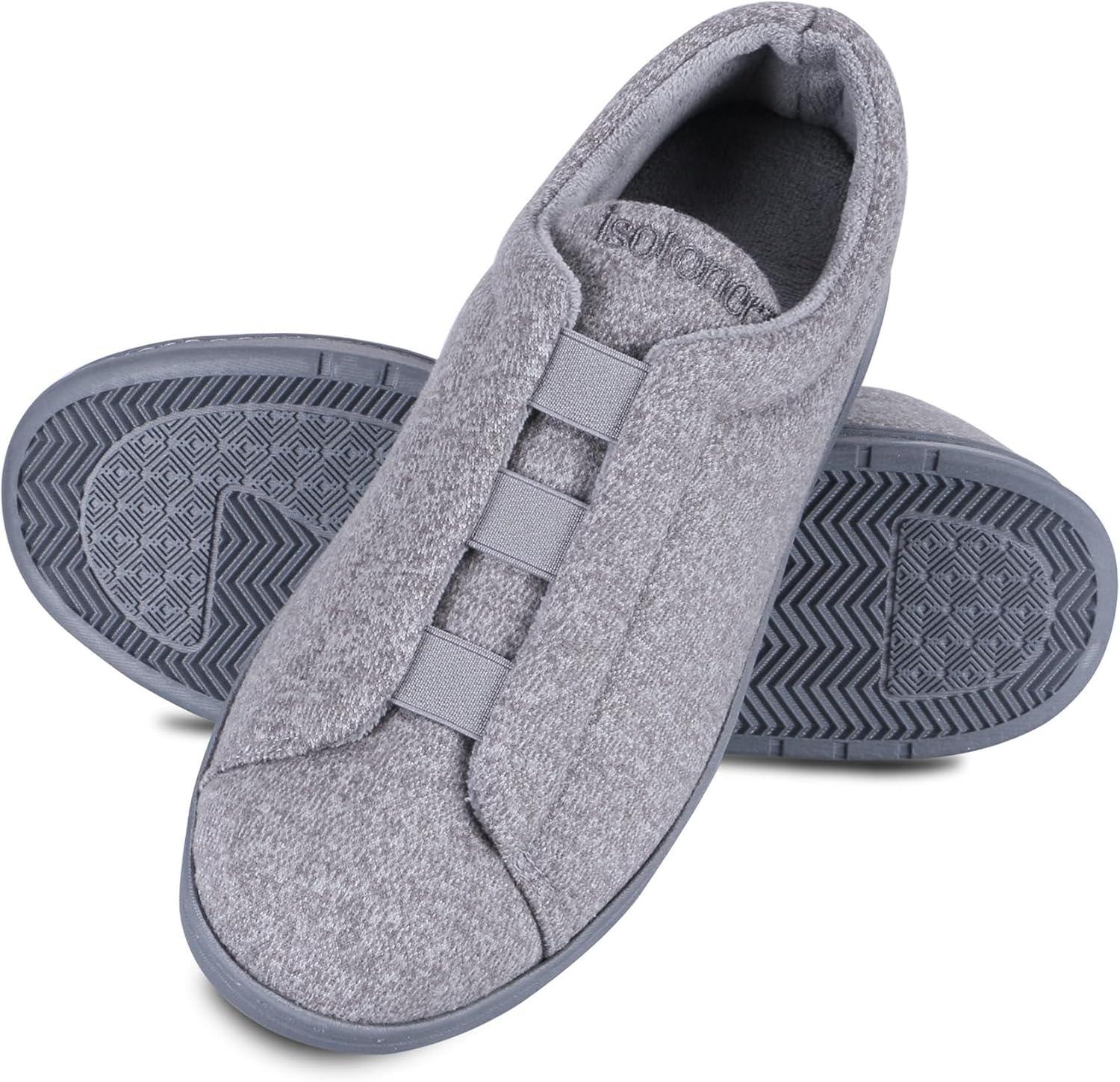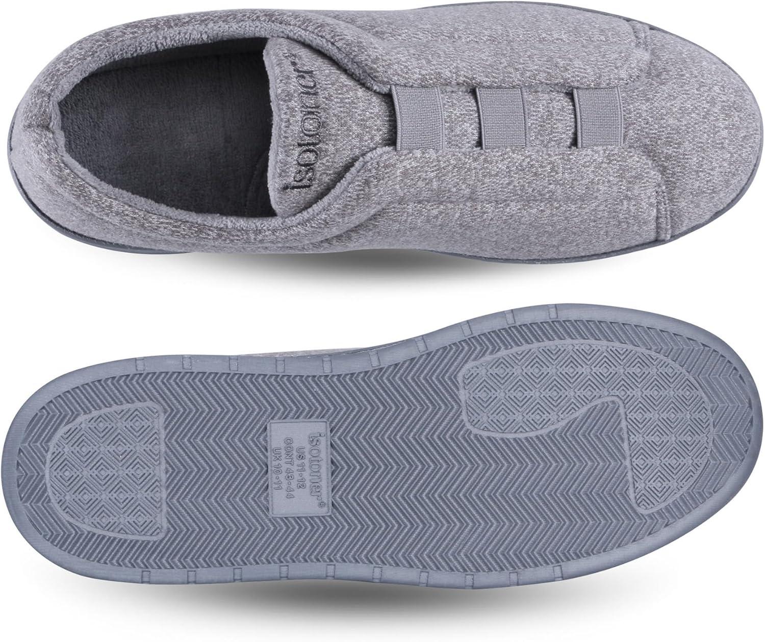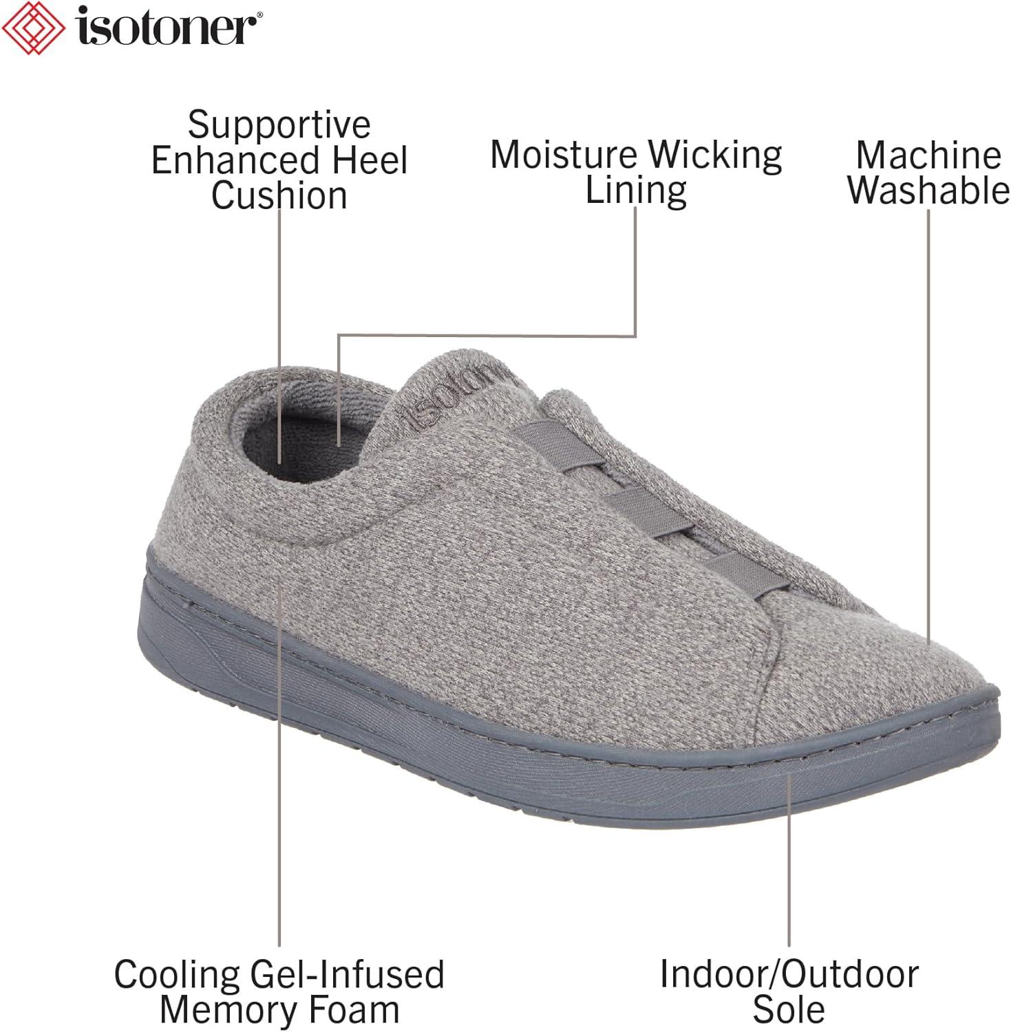 isotoner mens Indoor/Outdoor Heathered Knit Brady Closed Back Slippers With Memory Foam Comfort and Heel Support(Ash)