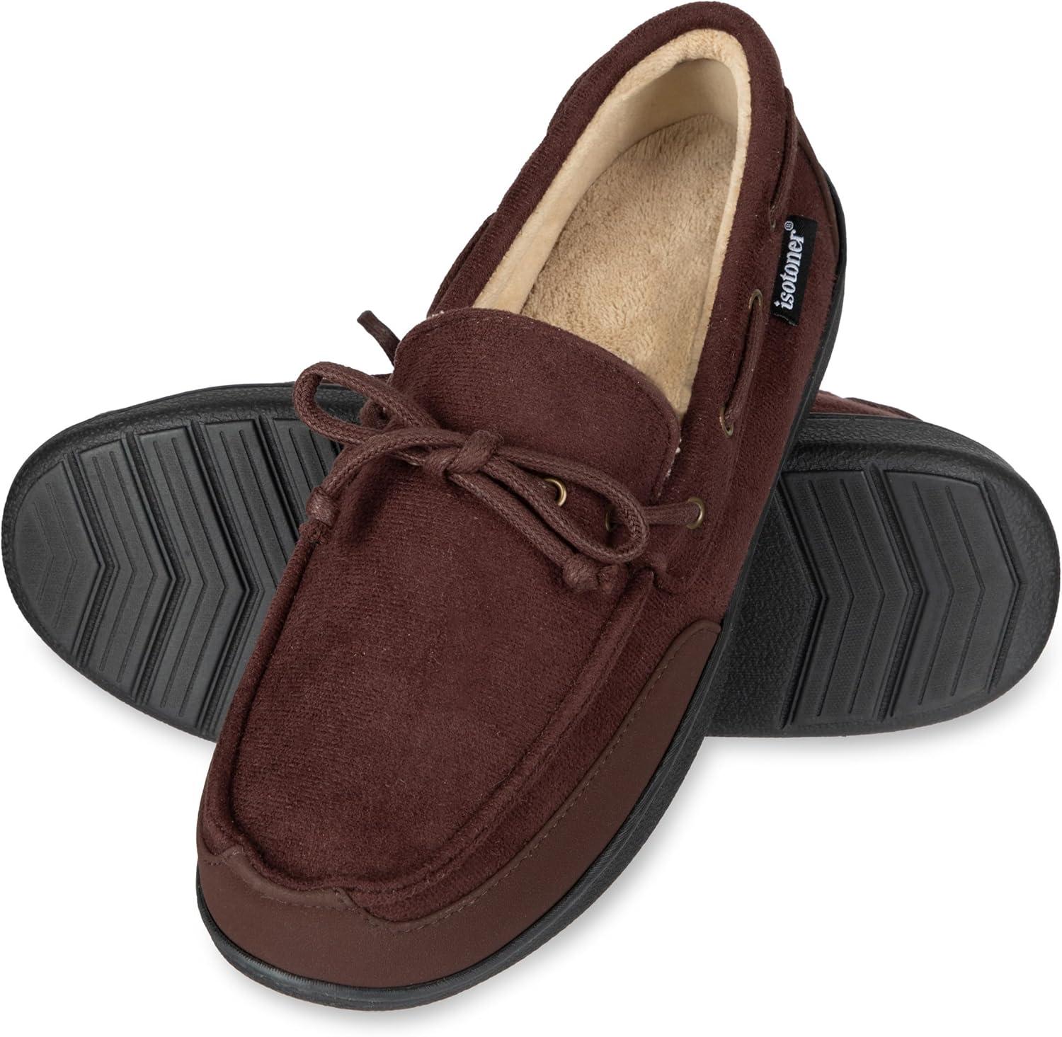 isotoner mens Indoor/Outdoor Water Repellent Boater Moccasins and Clogs With Memory Foam Comfort(Dark Chocolate)