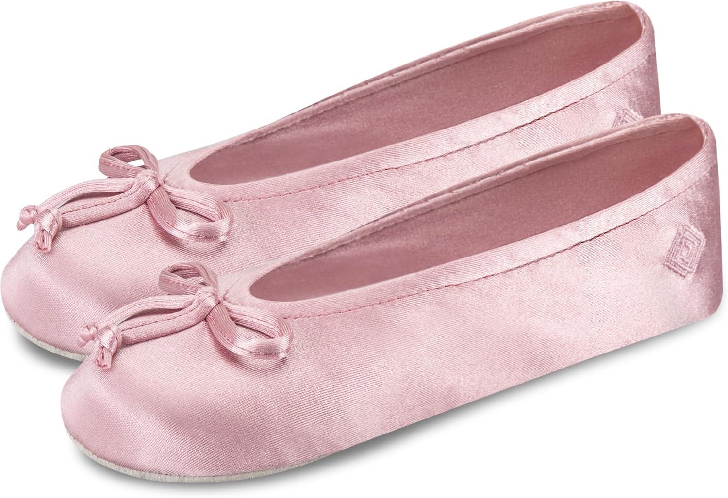 isotoner Women’s Classic Stretch Satin Ballerina Slippers with Satin and Sequin Bow Tie(Chili)