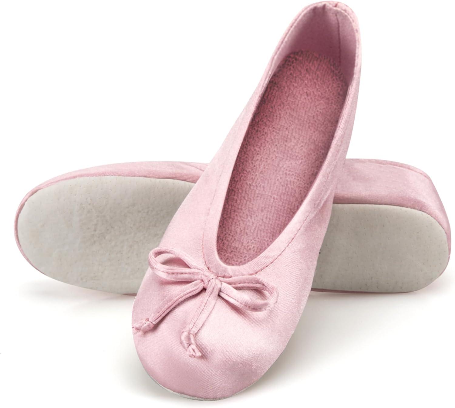 imageisotoner Womens Classic Stretch Satin Ballerina Slippers with Satin and Sequin Bow TieChili