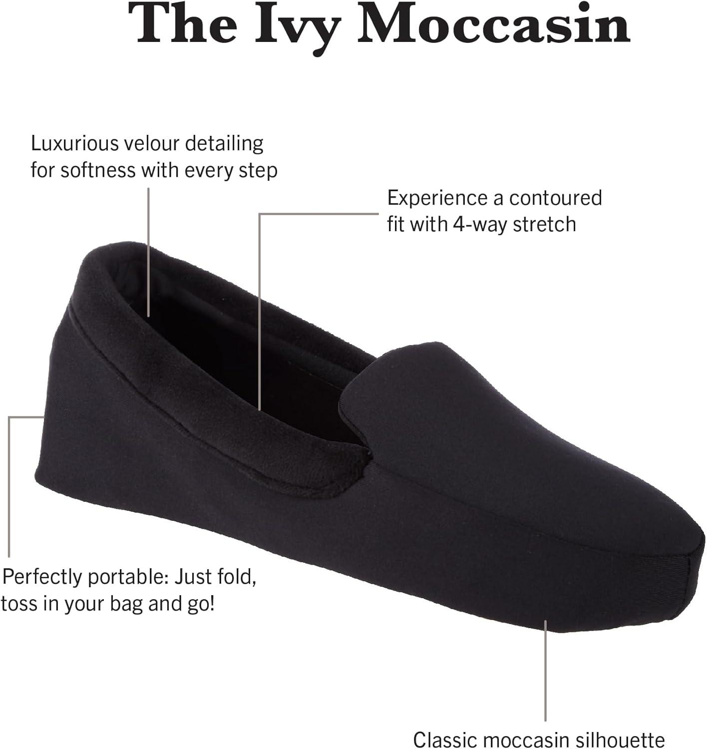 isotoner Women’s Contoured Ivy Spandex Velour Moc Slipper with Suede Sole(Black)