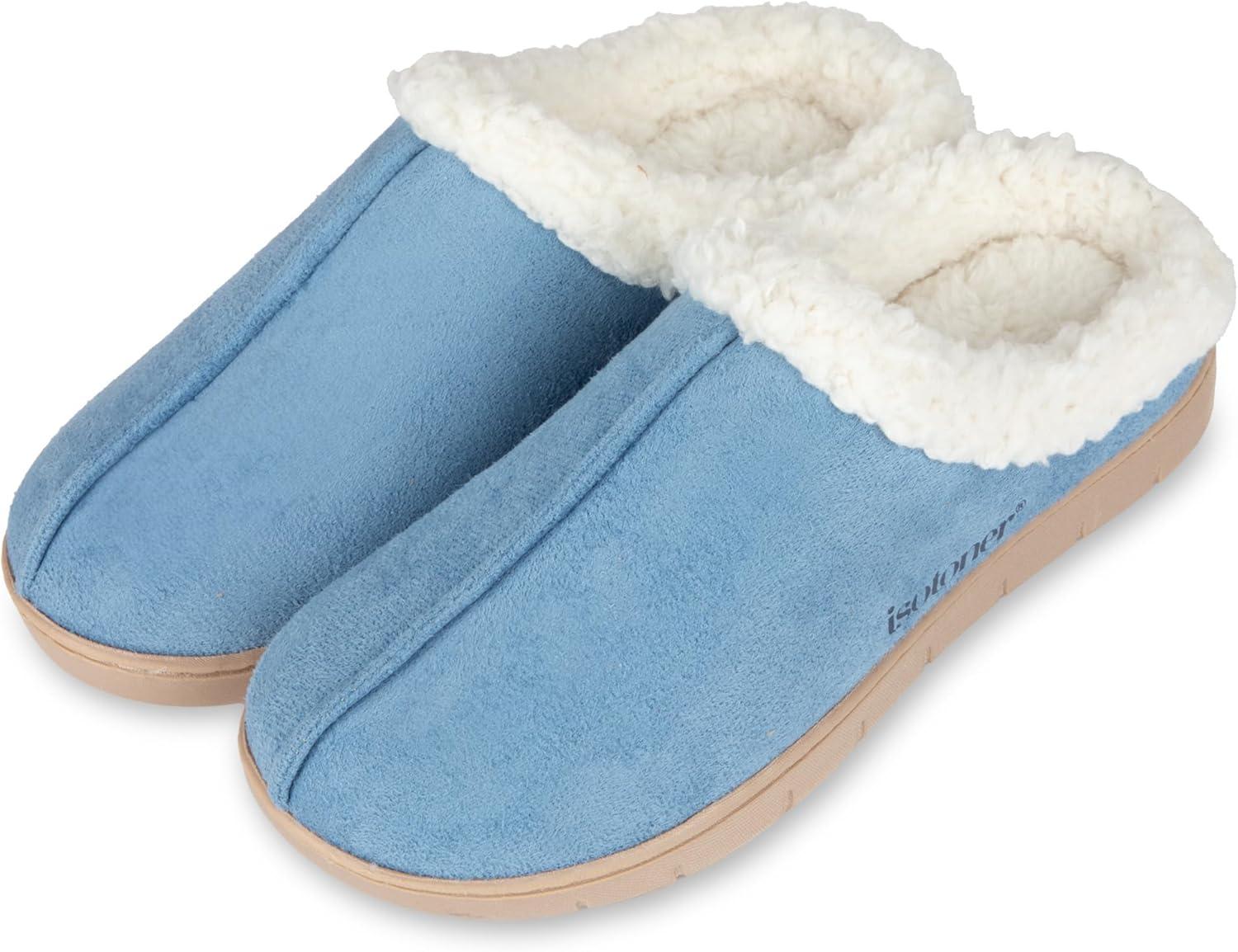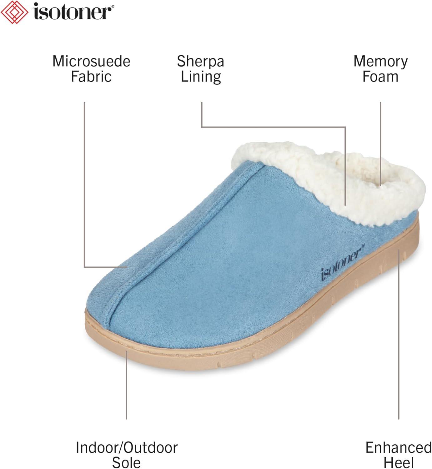 isotoner Women’s Indoor/Outdoor Memory Foam Clog Slippers(Blue Willow)