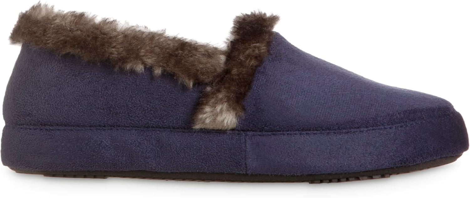 isotoner Women’s Memory Foam Microsuede a Line Eco Comfort Recycled Slippers(Navy Blue)