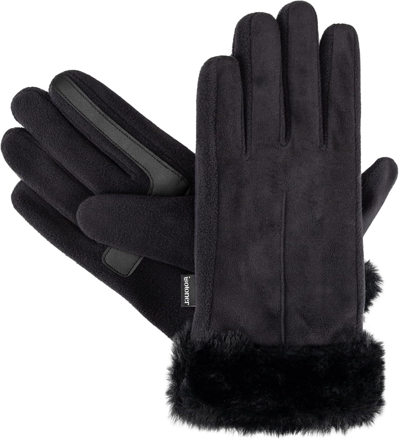 Elevate your winter look with these stylish gloves that deliver cozy warmth with refined, luxurious detail. A soft faux fur cuff adds an elegant finish, while the classic microsuede exterior offers a smooth, polished feel perfect for everyday wear. Inside, plush fleece lining surrounds your hands in inviting warmth for chilly days. Designed with 4-Way Stretch for a flexible, contoured fit that moves naturally with you, these gloves offer comfort that feels tailored and effortless. Stay connected on the go with smarTouch® technology at your fingertips, letting you text, navigate, or call without removing your gloves—even on the coldest days. SmartDri® technology helps repel rain and snow to keep hands dry in winter weather. Easy to maintain with a simple hand wash and air dry, these chic, water-repellent gloves deliver timeless appeal and modern convenience for any cold-weather outing.